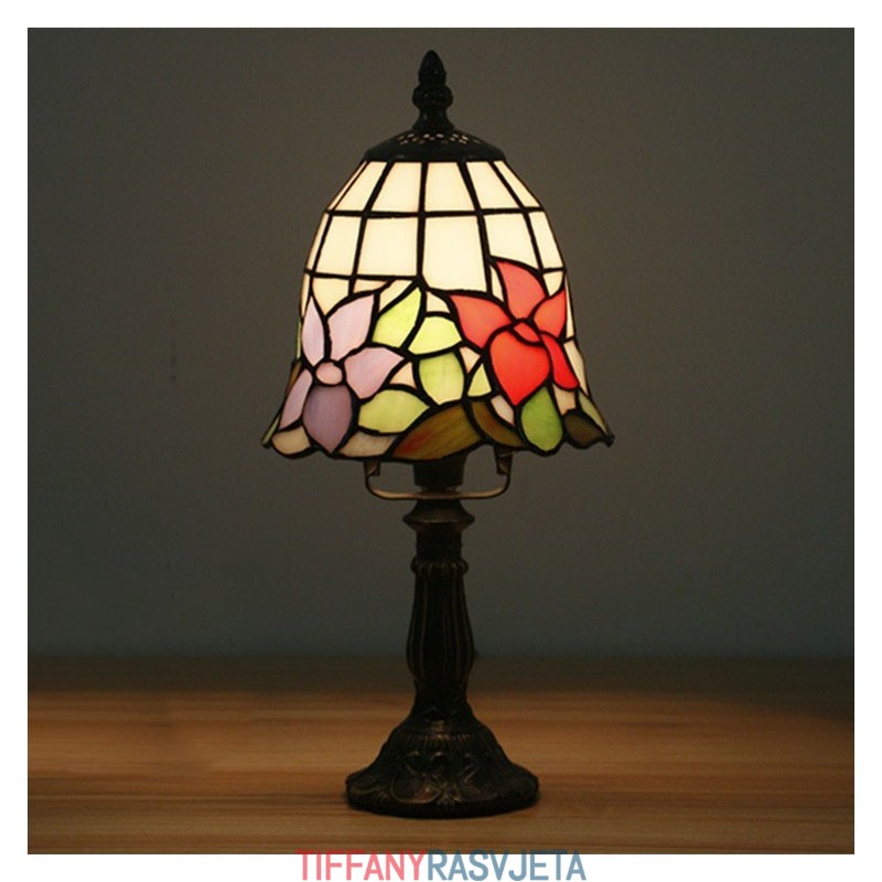 Ručno izrađena vintage cvjetna vitražna stolna lampa Tiffany od 6 inča