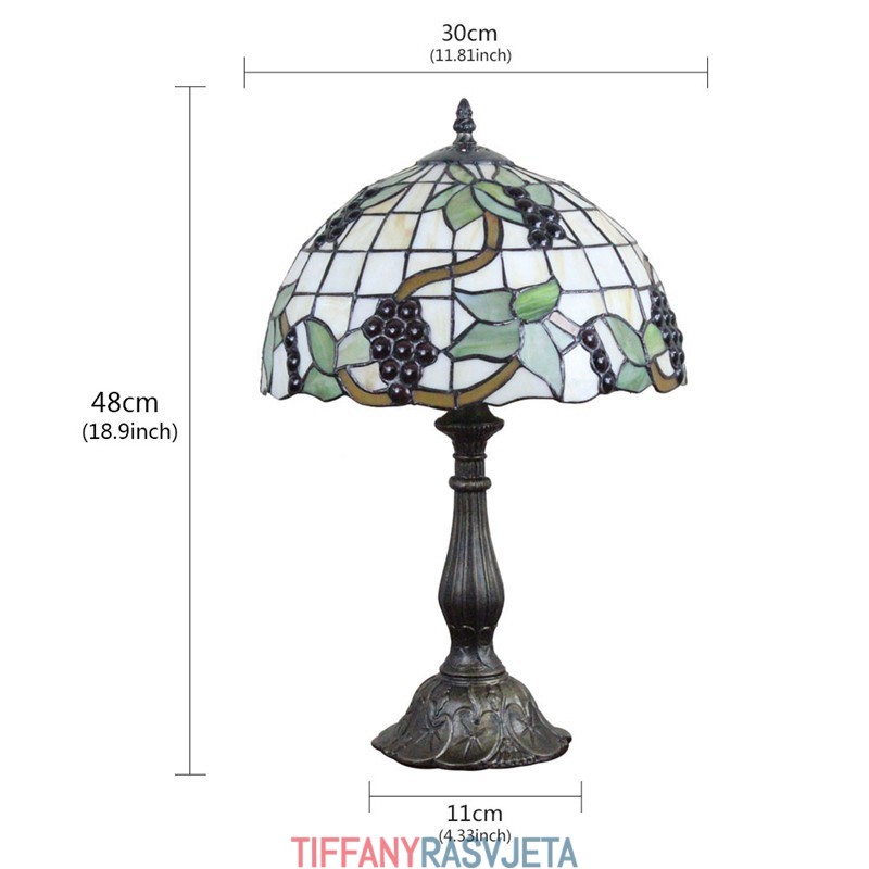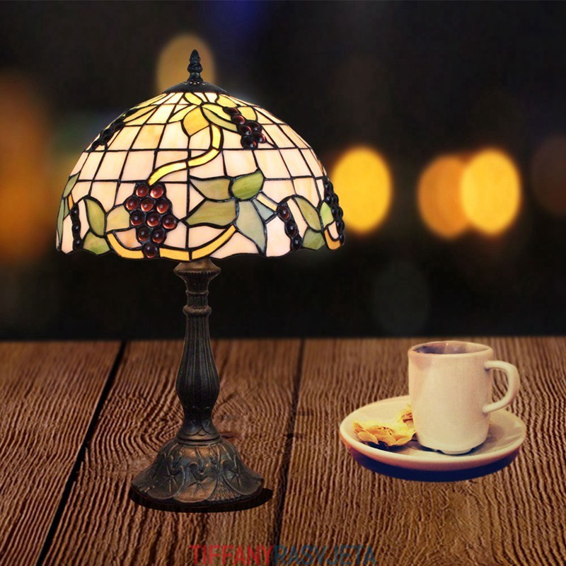 Ručno izrađena vintage pastoralna retro Tiffany stolna lampa od 30 cm s uzorkom grožđa