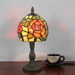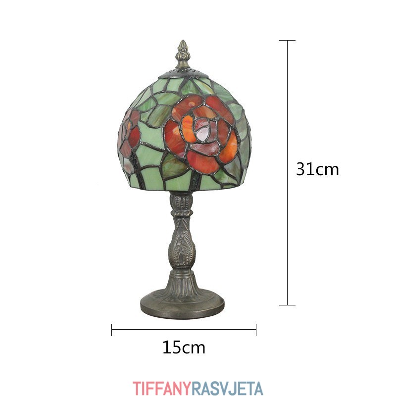 Ručno izrađena vintage pastoralna retro Tiffany stolna lampa od 6 inča s uzorkom crvene ruže