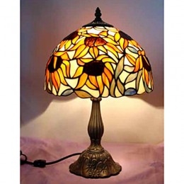 Ručno izrađena vintage Tiffany stolna lampa sa sjenilom u stilu Tiffanyja sa suncokretima