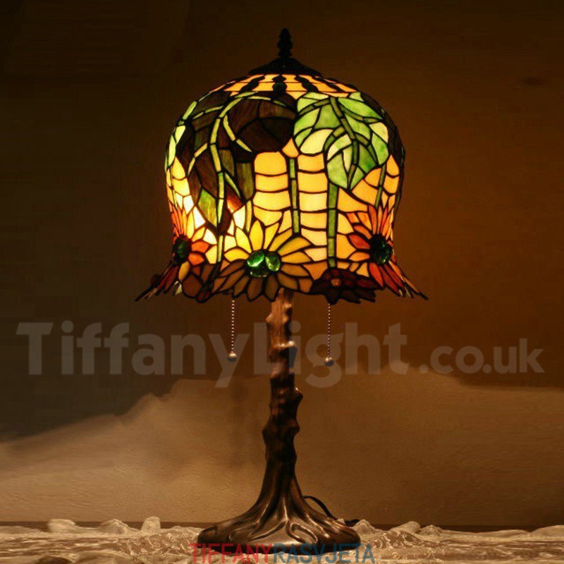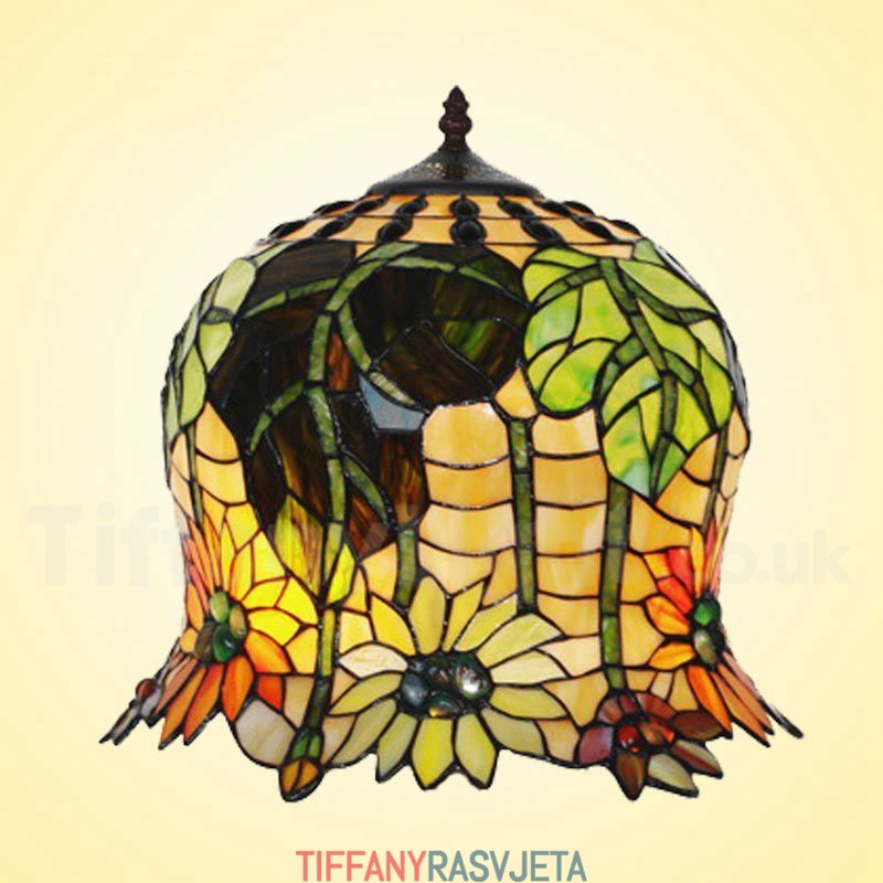 Ručno izrađena vintage Tiffany stolna lampa s motivom suncokreta od 14 inča