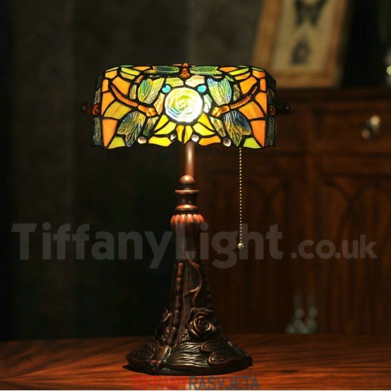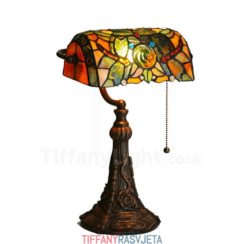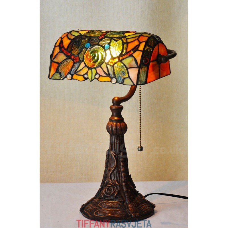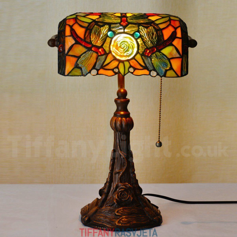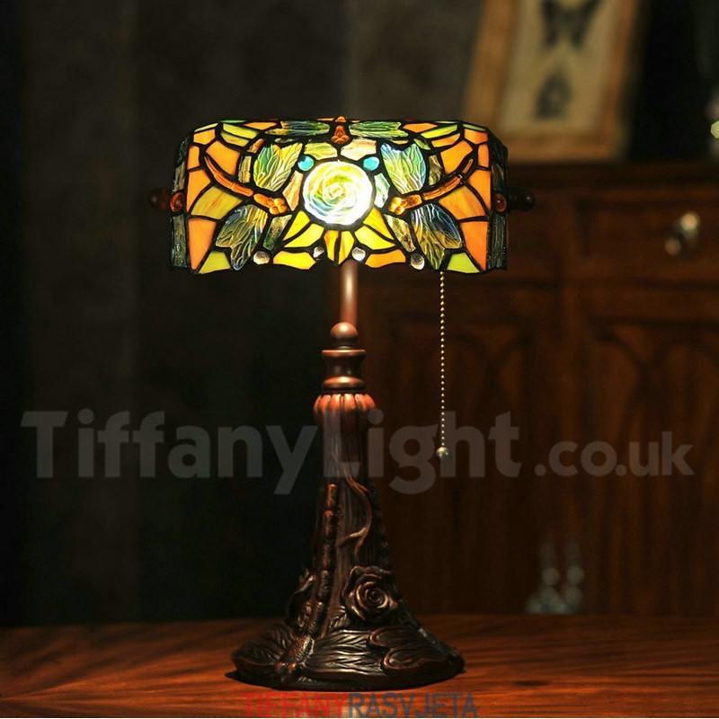 Ručno izrađena vintage Tiffany stolna lampa s motivom ruže i vretenca od 25 cm