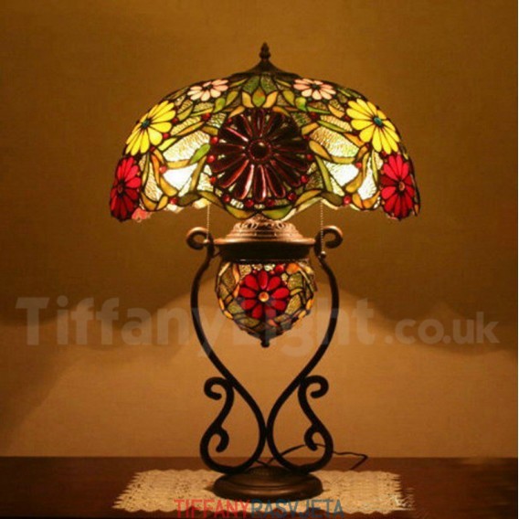 Ručno izrađena vintage Tiffany stolna lampa s motivom ruralnog suncokreta od 18 inča