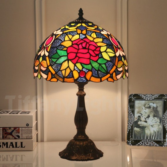 Ručno izrađena vintage 30 cm Tiffany stolna lampa od vitraja