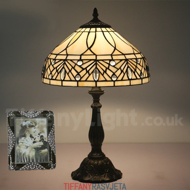 Ručno izrađena vintage 30 cm Tiffany stolna lampa od vitraja
