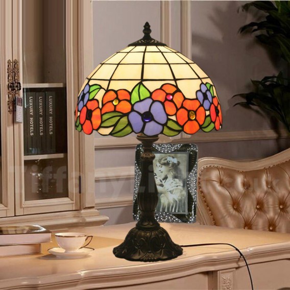 Ručno izrađena vintage 30 cm Tiffany stolna lampa od vitraja