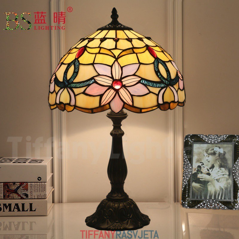 Ručno izrađena vintage 30 cm Tiffany stolna lampa od vitraja