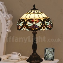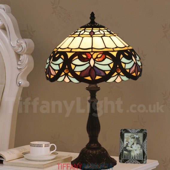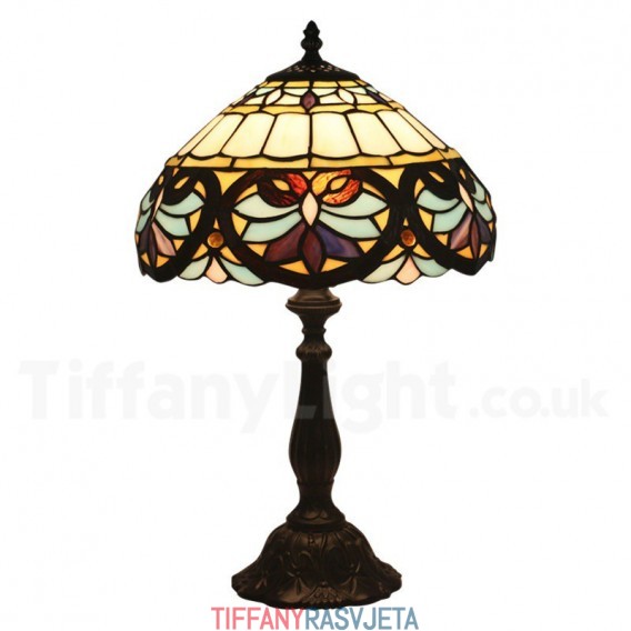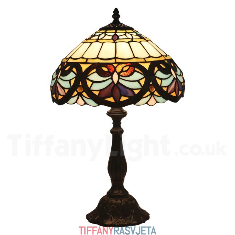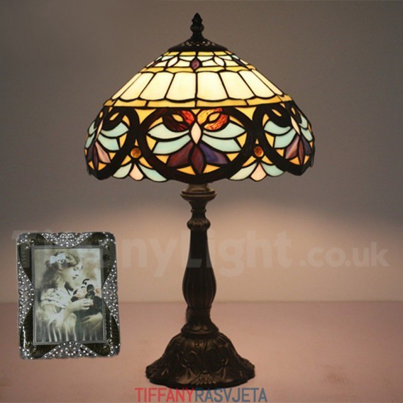 Ručno izrađena vintage 30 cm barokna Tiffany stolna lampa od vitraja