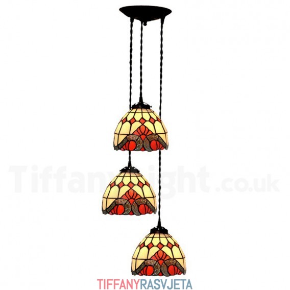 Ručno izrađena vintage barokna viseća svjetiljka Tiffany s 3 žarulje, 7 inča