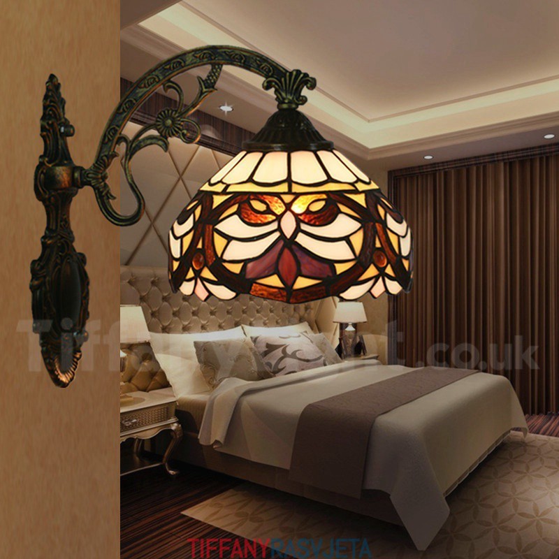 Ručno izrađena vintage zidna svjetiljka Tiffany u baroknom stilu od vitraja od 8 inča