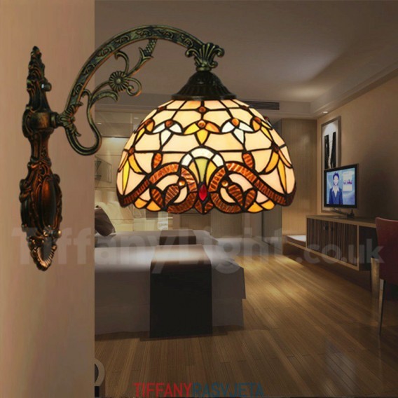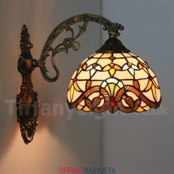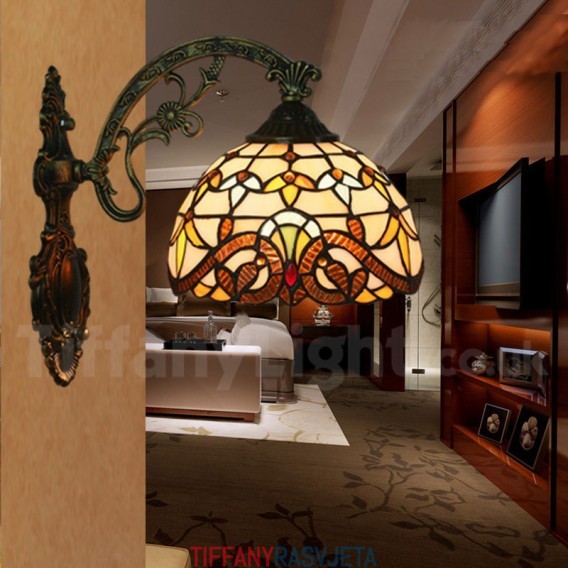 Ručno izrađena vintage zidna svjetiljka Tiffany u baroknom stilu od vitraja od 8 inča