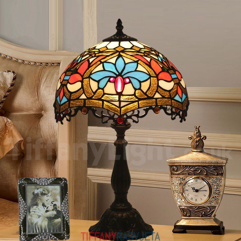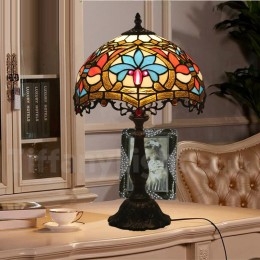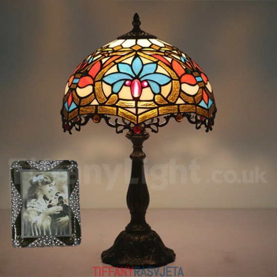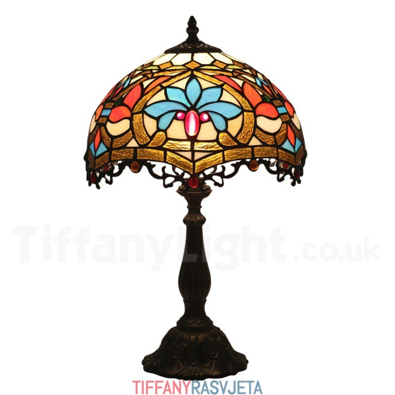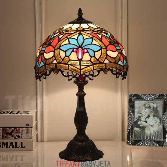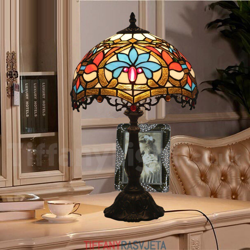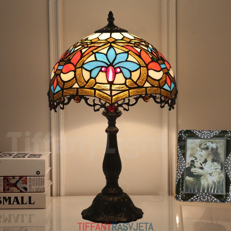 Ručno izrađena vintage 30 cm barokna Tiffany stolna lampa od vitraja