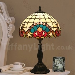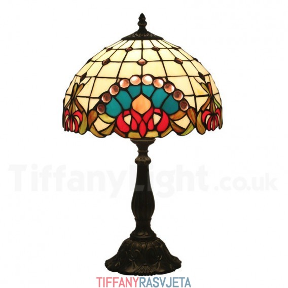 Ručno izrađena vintage 30 cm barokna Tiffany stolna lampa od vitraja