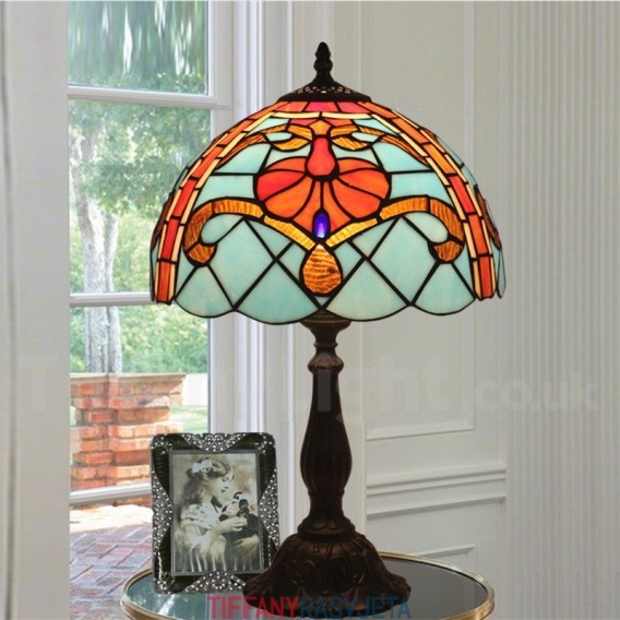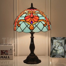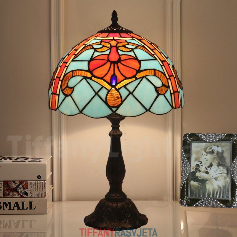 Ručno izrađena vintage 30 cm stolna lampa Tiffany u mediteranskom stilu od vitraja