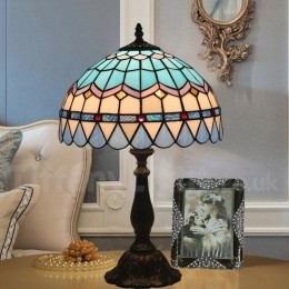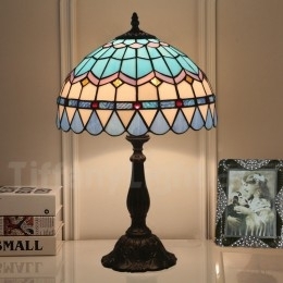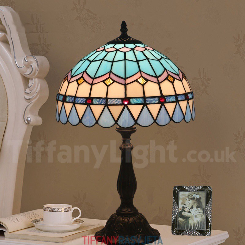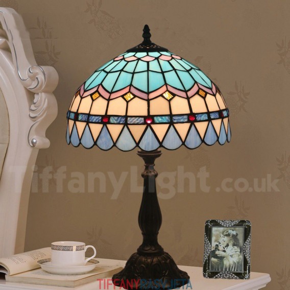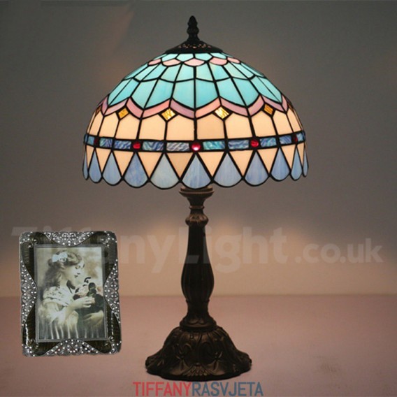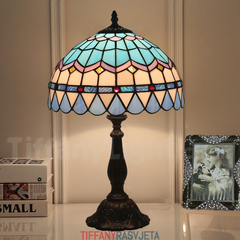 Ručno izrađena vintage 30 cm stolna lampa Tiffany u mediteranskom stilu od vitraja