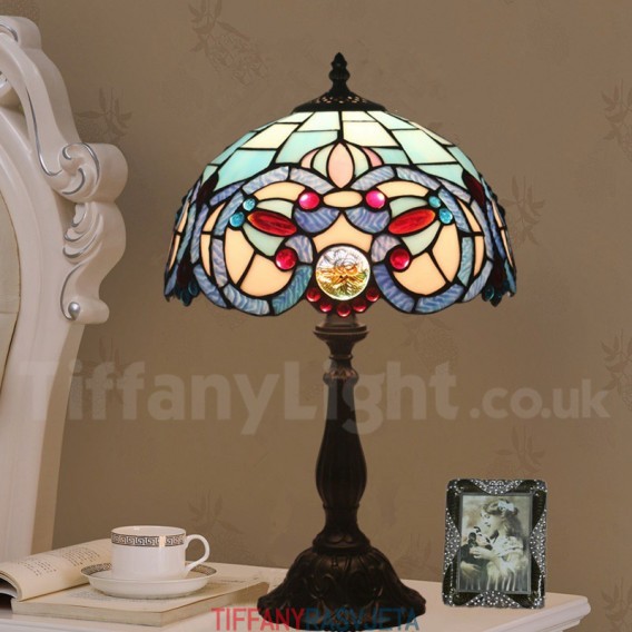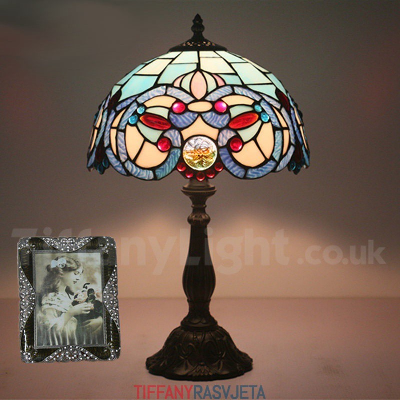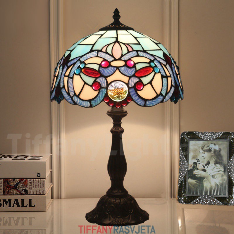 Ručno izrađena vintage 30 cm mediteranska vitražna stolna lampa Tiffany u mediteranskom stilu