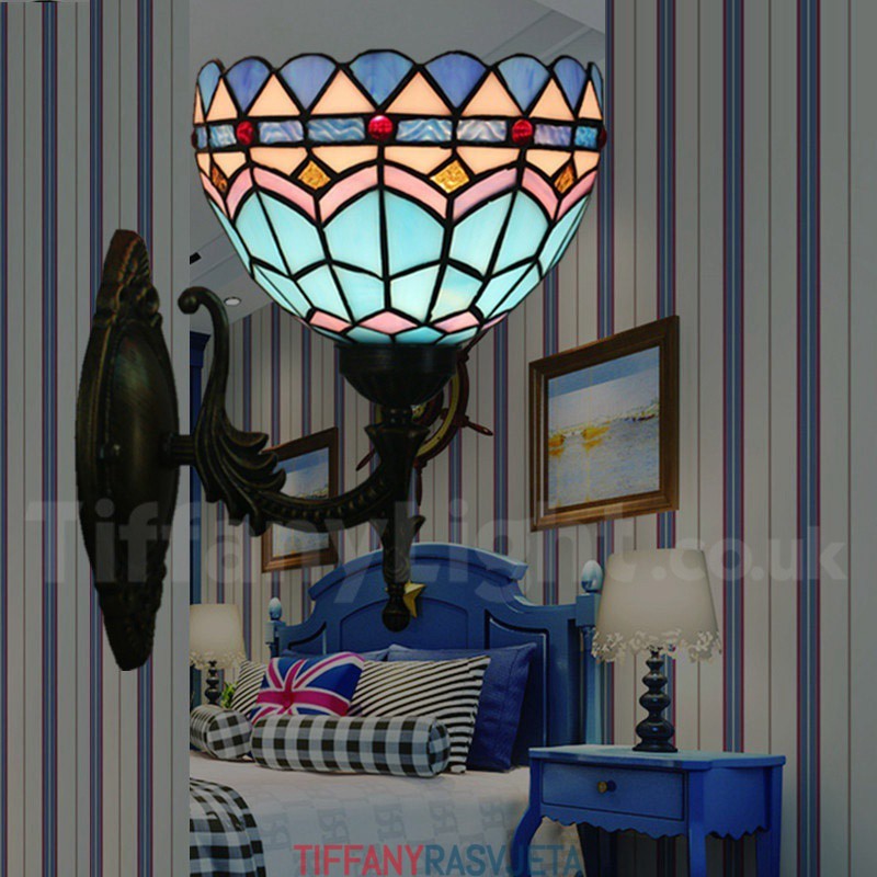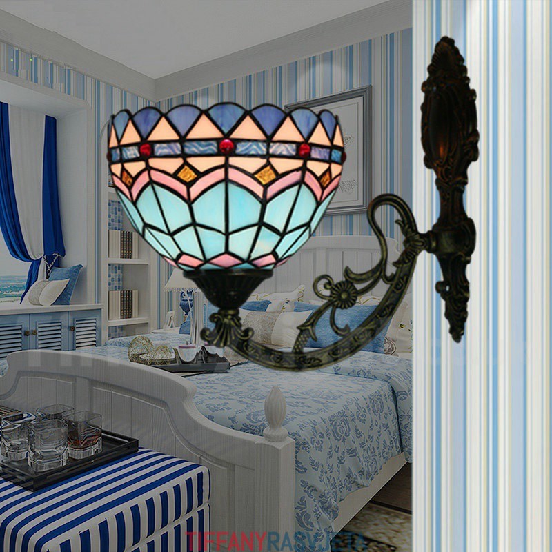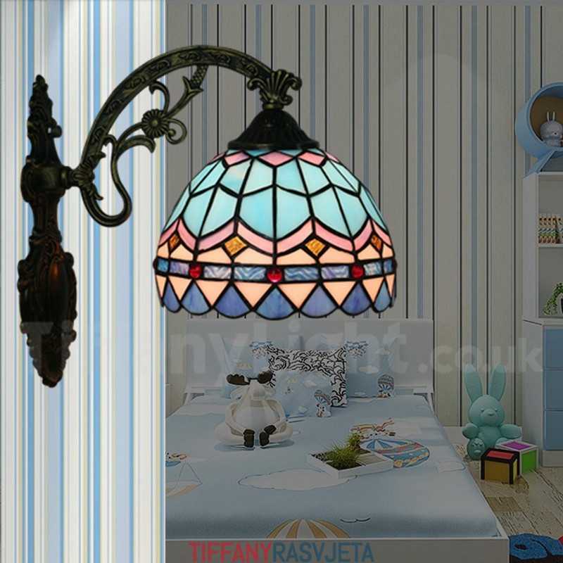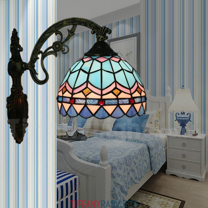 Ručno izrađena vintage zidna svjetiljka od vitraja u mediteranskom stilu Tiffany od 8 inča