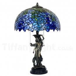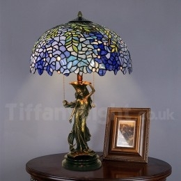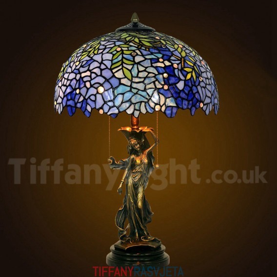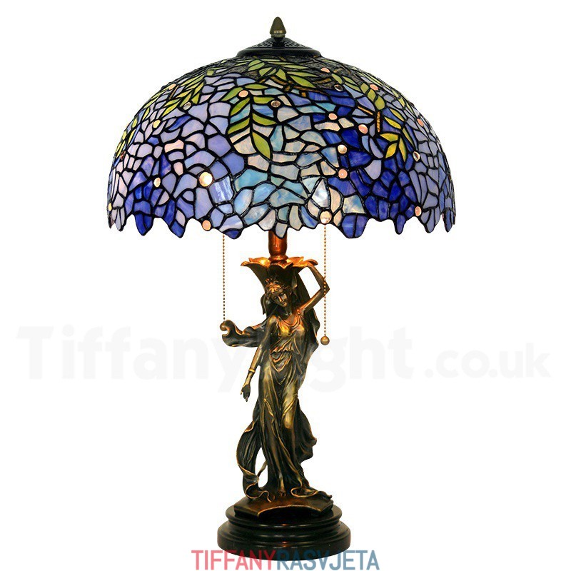 Ručno izrađena vintage Tiffany stolna lampa od plave glicinije, 40 cm