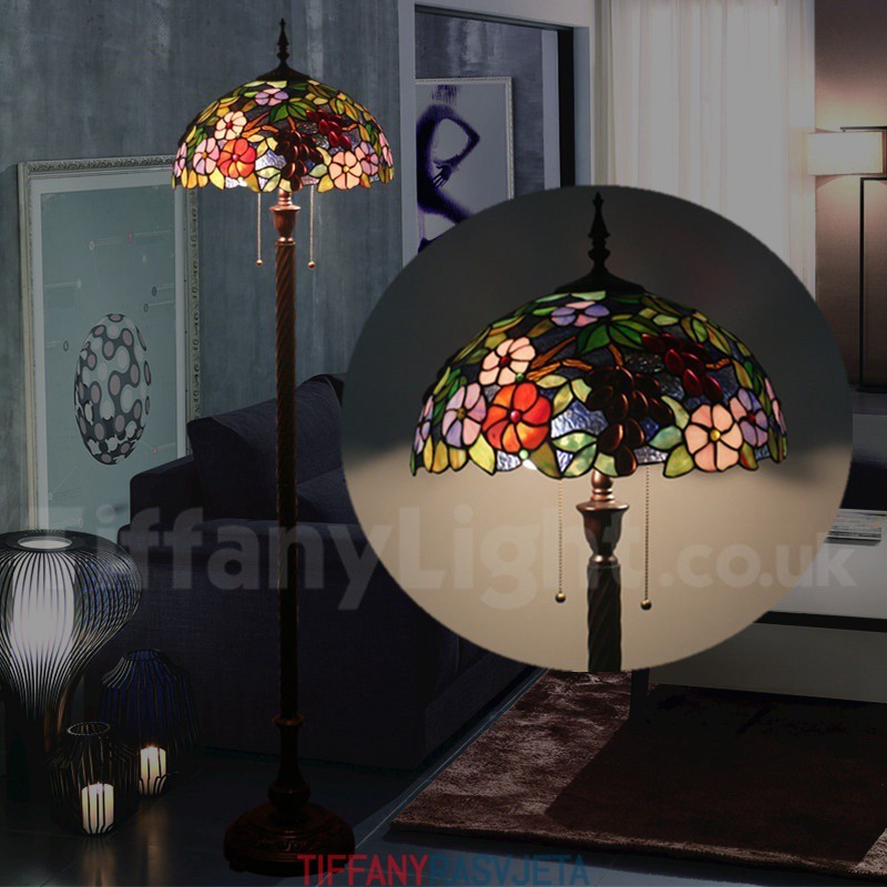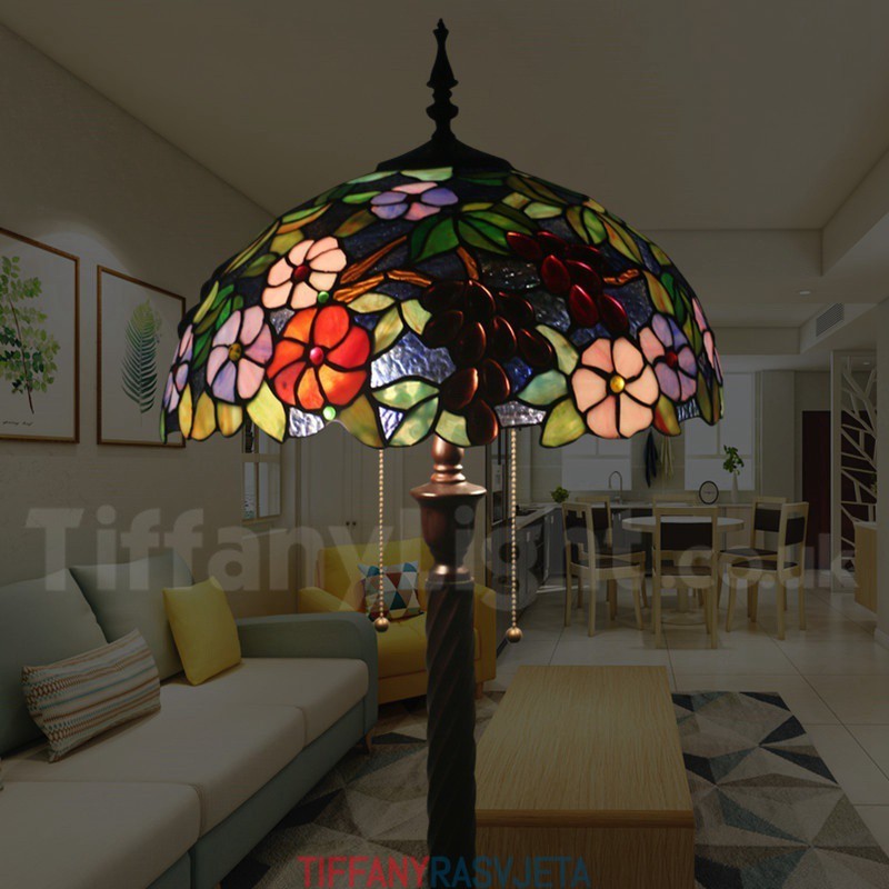 Ručno izrađena vintage podna lampa Tiffany u stilu vitraja od 16 inča
