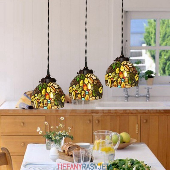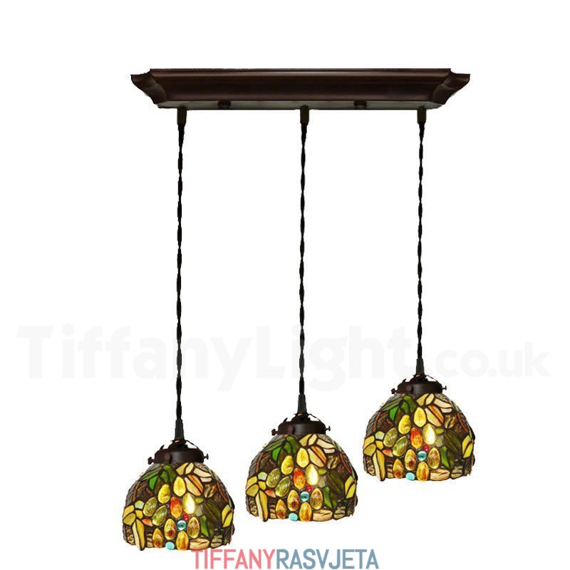 Ručno izrađena vintage viseća svjetiljka Tiffany s 3 žarulje u boji grožđa
