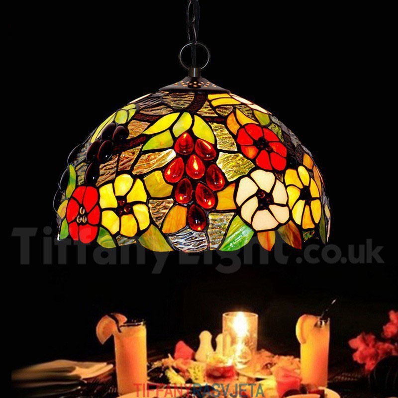 Ručno izrađena vintage 12-inčna rustikalna Tiffany viseća svjetiljka s motivom grožđa