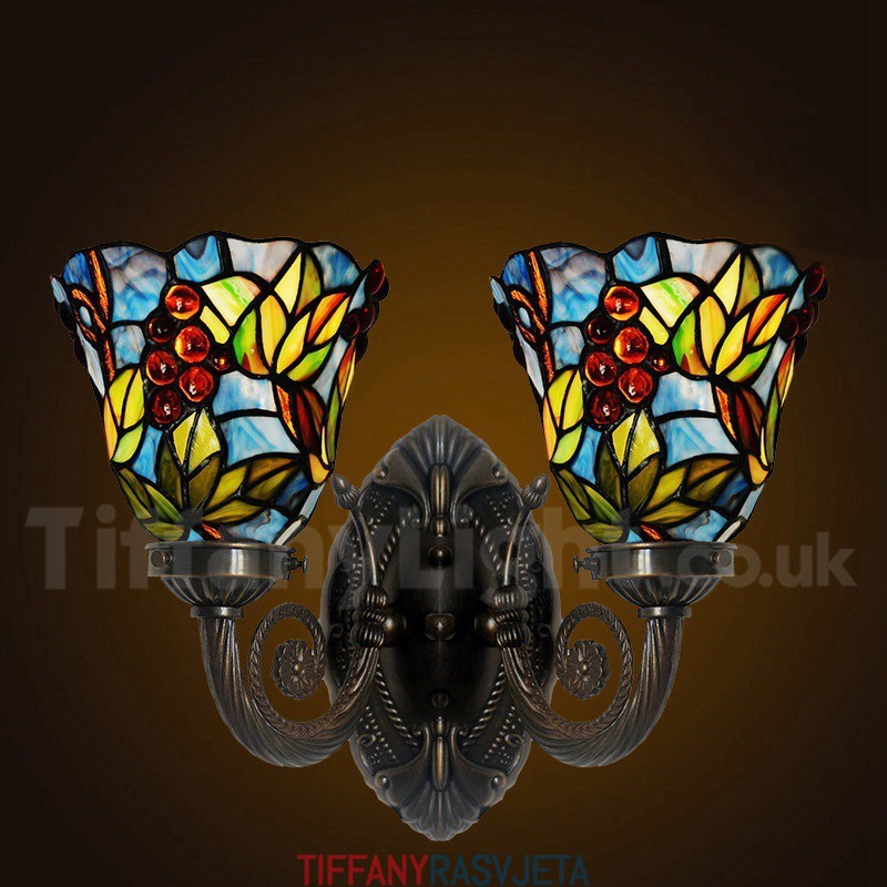 Ručno izrađena vintage ruralna zidna svjetiljka s 2 svjetla u boji grožđa Tiffany