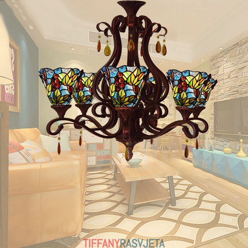 Ručno izrađeni vintage luster s grožđem, retro, Tiffany luster sa 6 svjetala