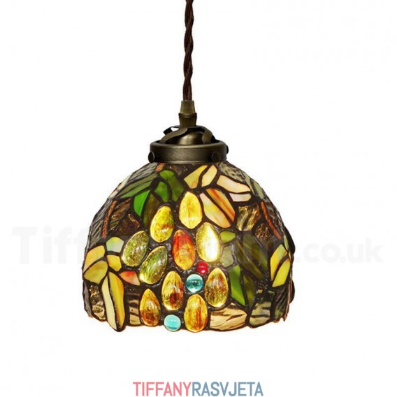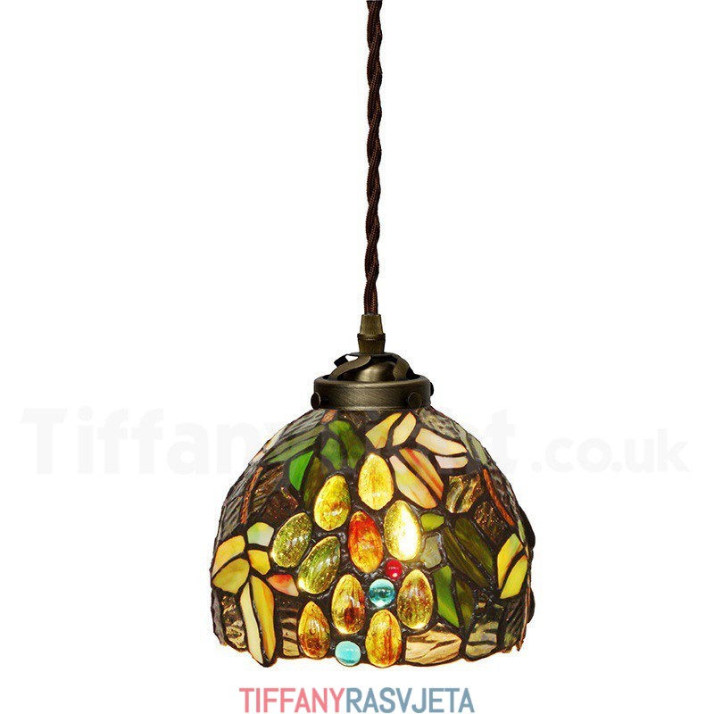 Ručno izrađena vintage Tiffany viseća svjetiljka od 7 inča s motivom grožđa i 1 svjetiljkom
