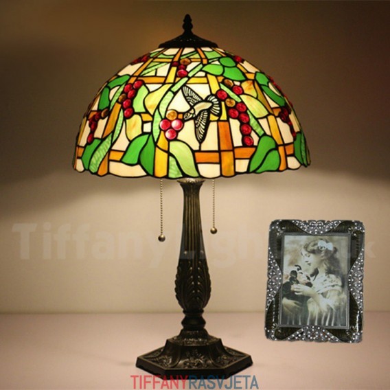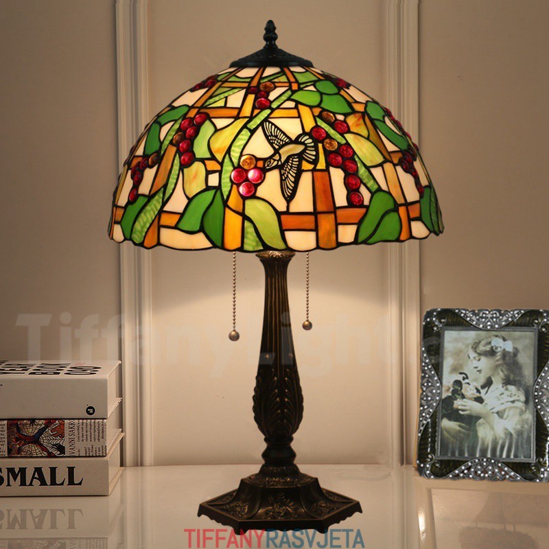 Ručno izrađena vintage stolna lampa Tiffany od vitraja od 16 inča u stilu kolibrija