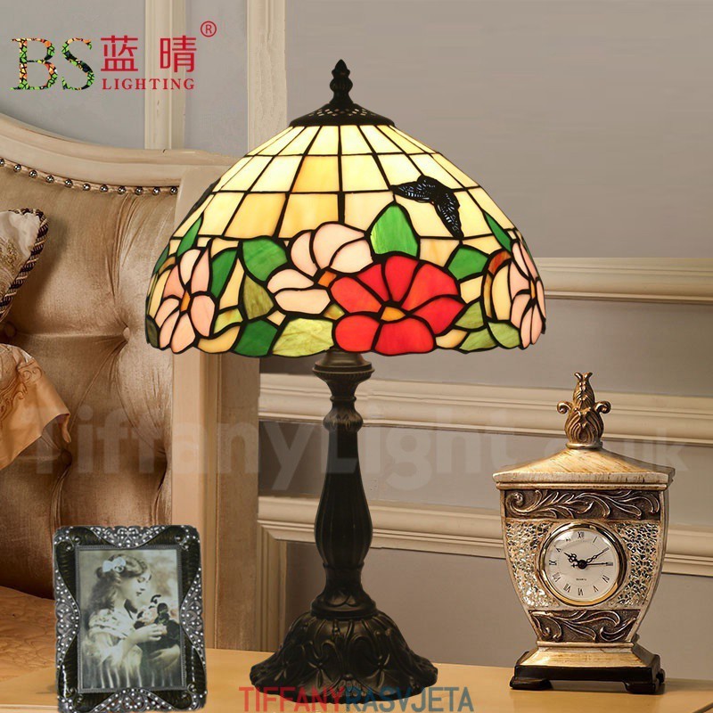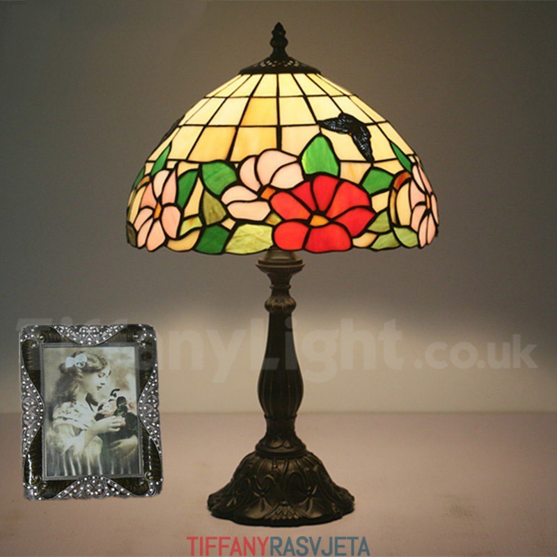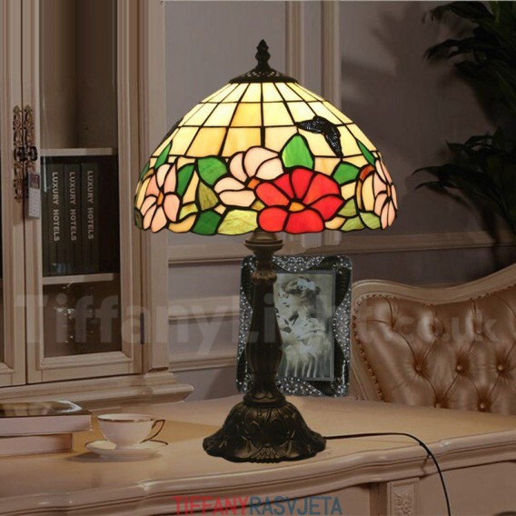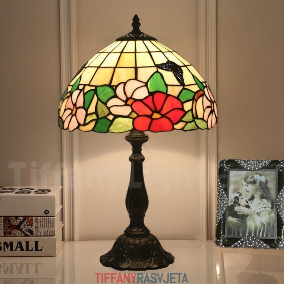 Ručno izrađena vintage 30 cm stolna lampa Tiffany u stilu vitraja s leptirom