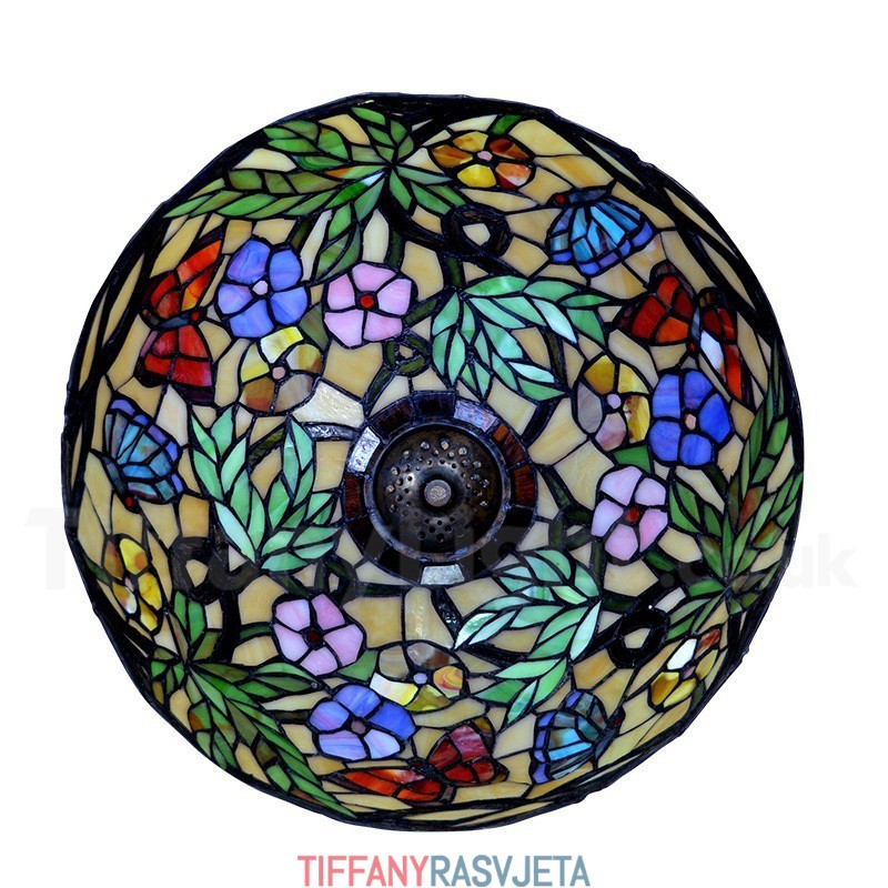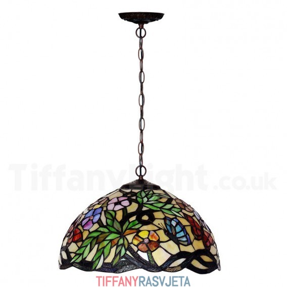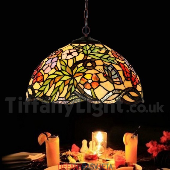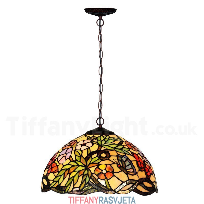 Ručno izrađena vintage viseća svjetiljka Tiffany s motivom seoskog leptira od 16 inča