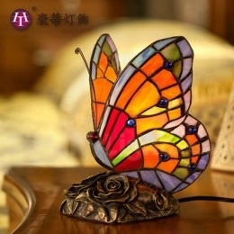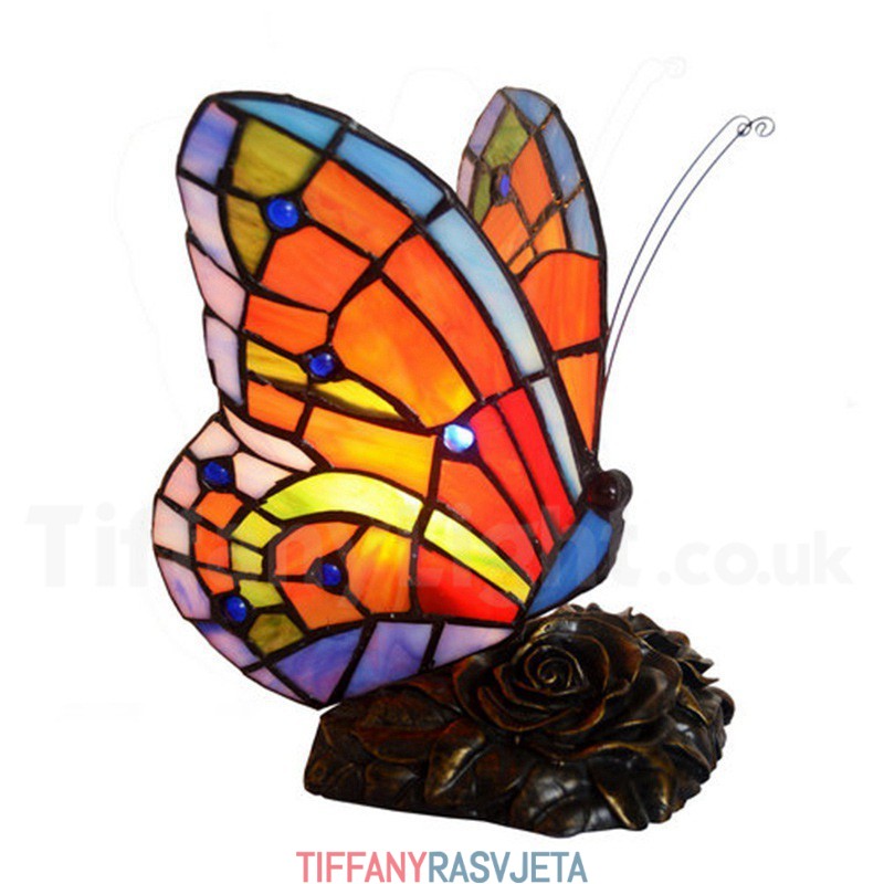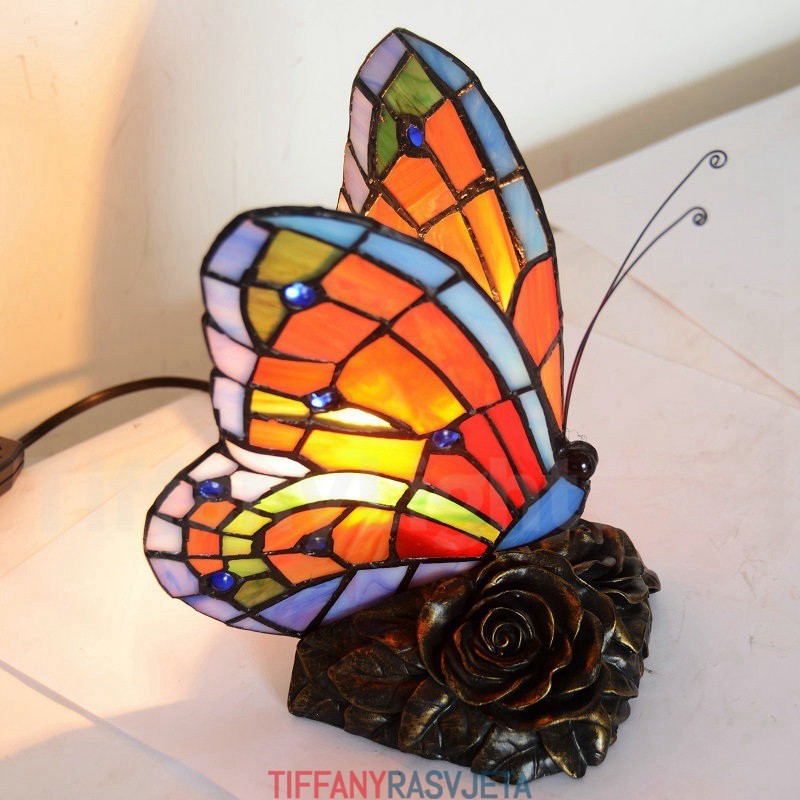 Ručno izrađena vintage Tiffany stolna lampa s leptirom