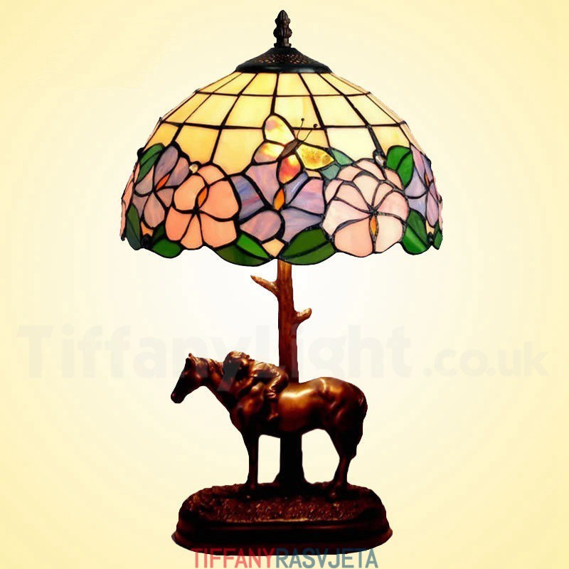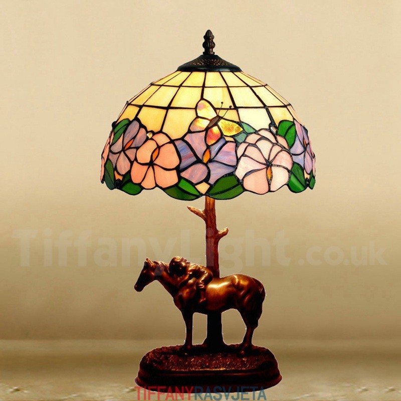 Ručno izrađena vintage 12-inčna seoska Tiffany stolna lampa s leptirom
