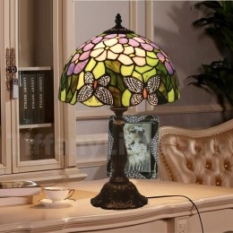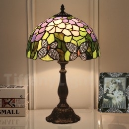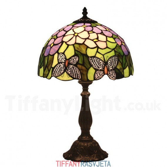 Ručno izrađena vintage 30 cm stolna lampa Tiffany u stilu vitraja s leptirom