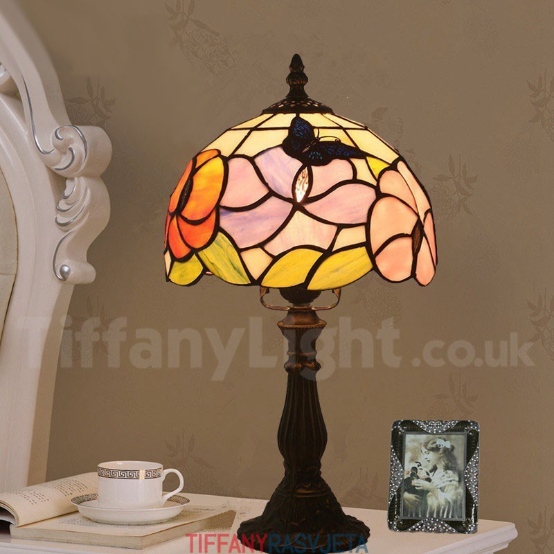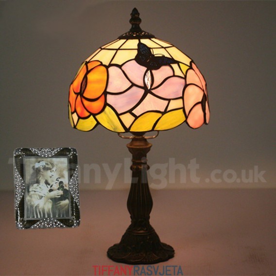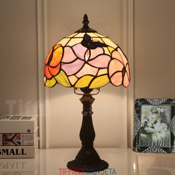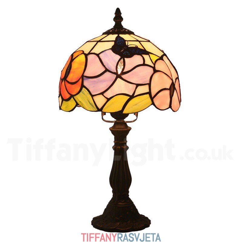 Ručno izrađena vintage 8-inčna stolna lampa Tiffany u stilu vitraja s leptirom
