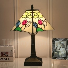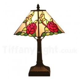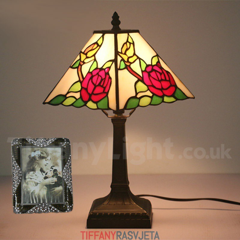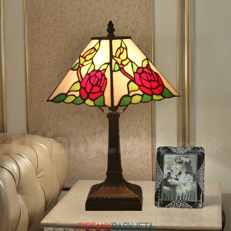 Ručno izrađena vintage 11-inčna američka vitražna Tiffany stolna lampa u stilu ruže