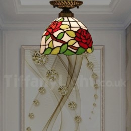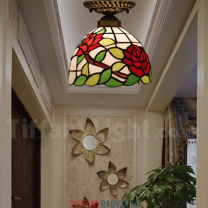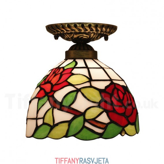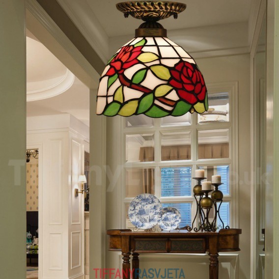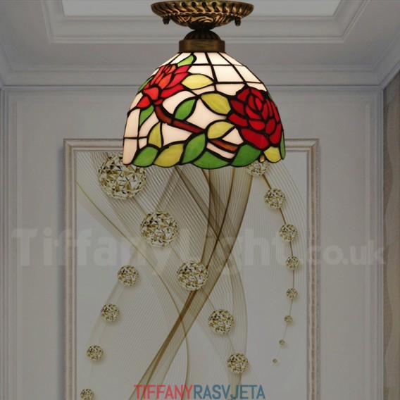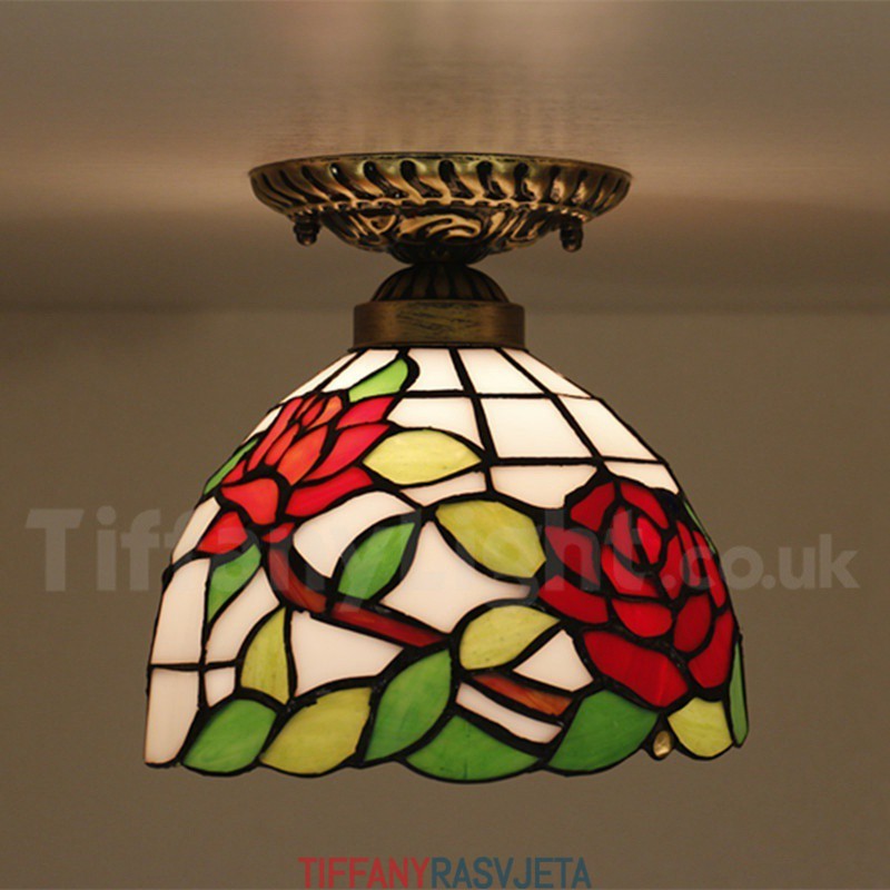 Ručno izrađena vintage ugradbena svjetiljka Tiffany u stilu vitraja od 8 inča, u stilu ruže