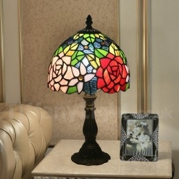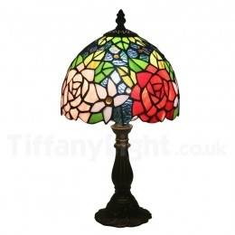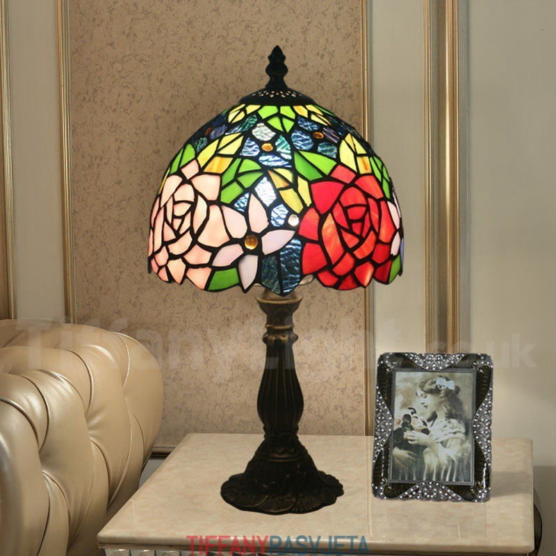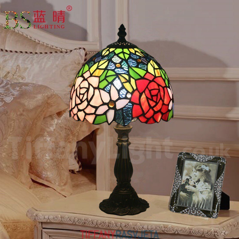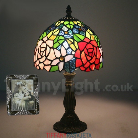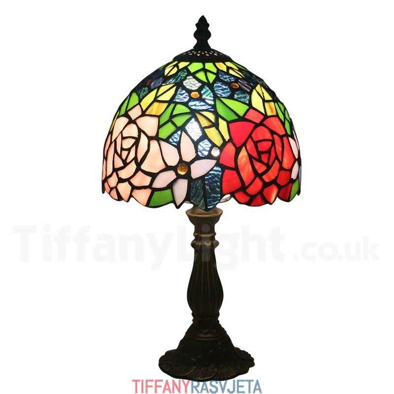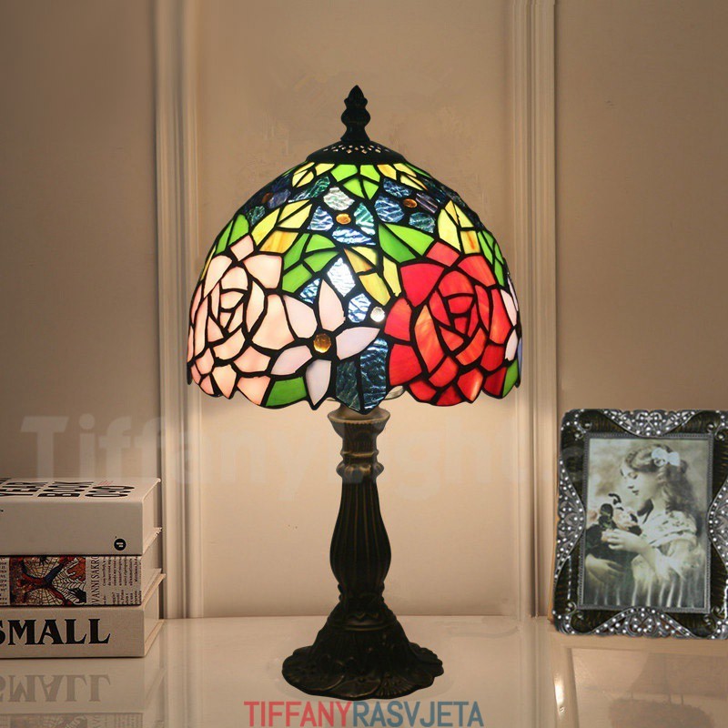 Ručno izrađena vintage 8-inčna stolna lampa Tiffany s vitražom u stilu ruže