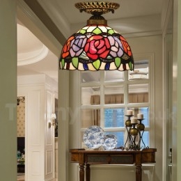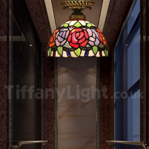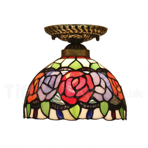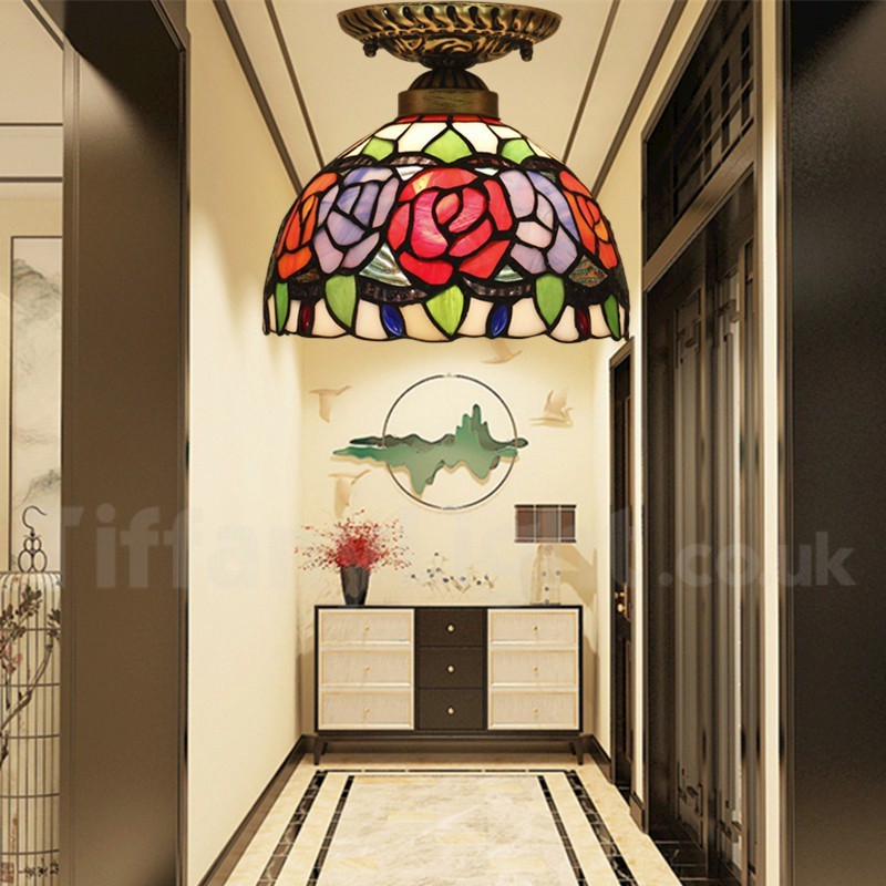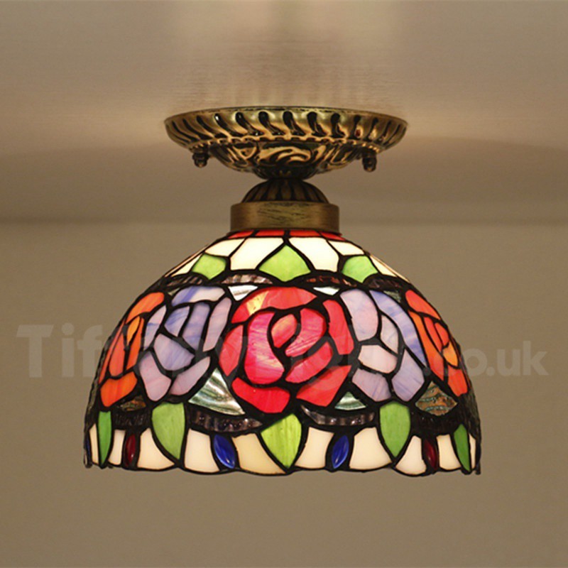 Ručno izrađena vintage ugradbena svjetiljka Tiffany u stilu vitraja od 8 inča, u stilu ruže