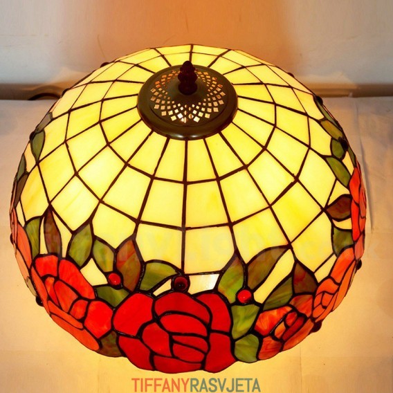 Ručno izrađena vintage Tiffany stolna lampa s crvenom ružom od 16 inča