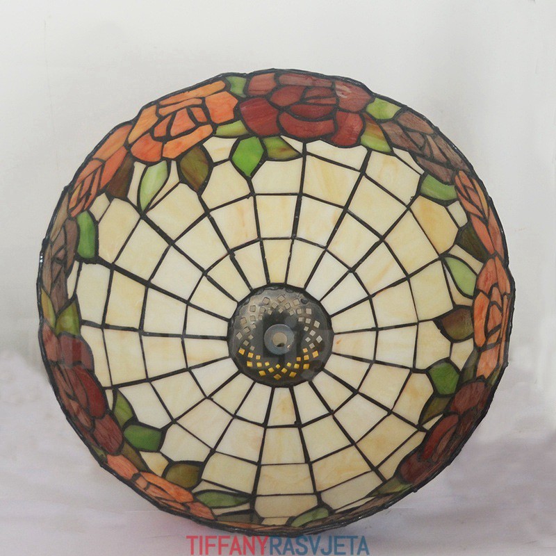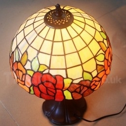 Ručno izrađena vintage 12-inčna ruralna Tiffany stolna lampa s crvenom ružom