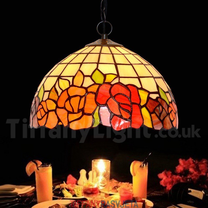 Ručno izrađena vintage Tiffany stolna lampa s crvenom ružom od 30 cm