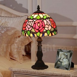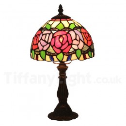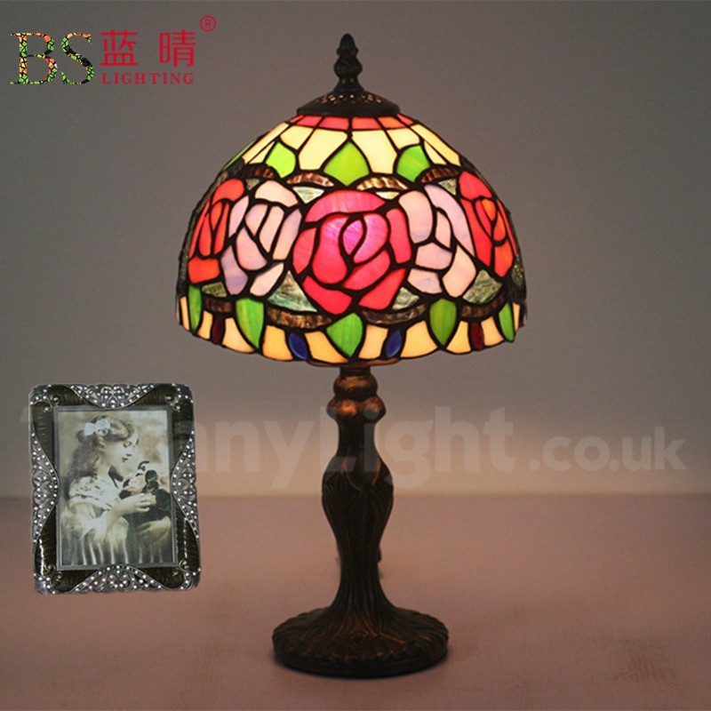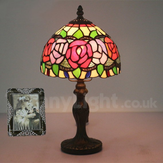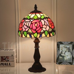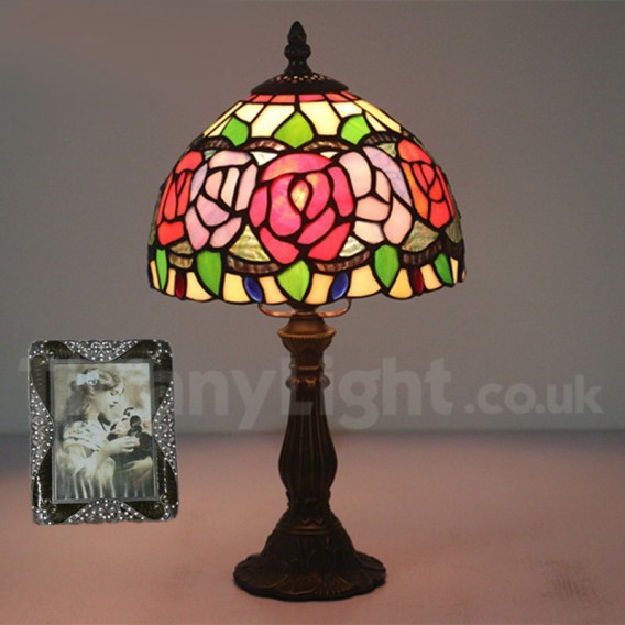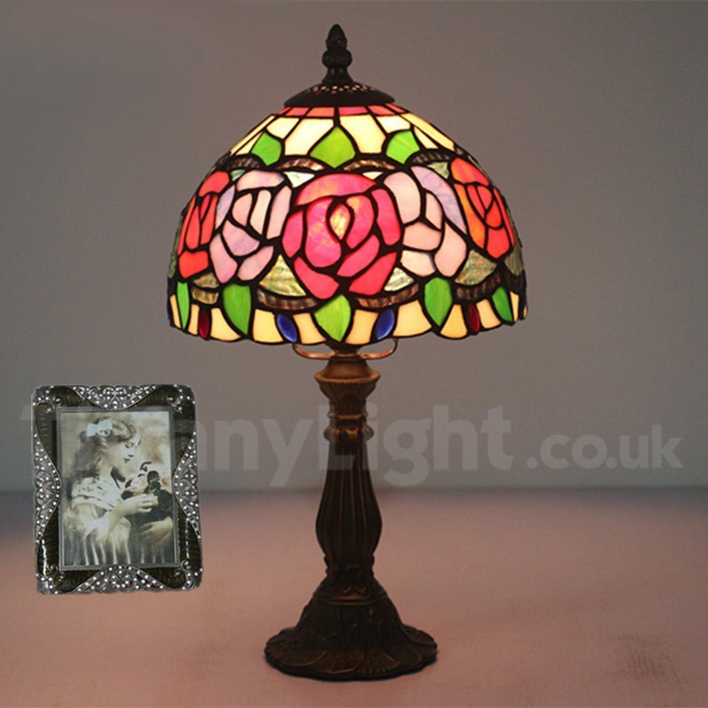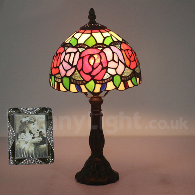 Ručno izrađena vintage 8-inčna stolna lampa Tiffany s vitražom u stilu ruže