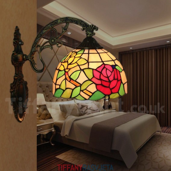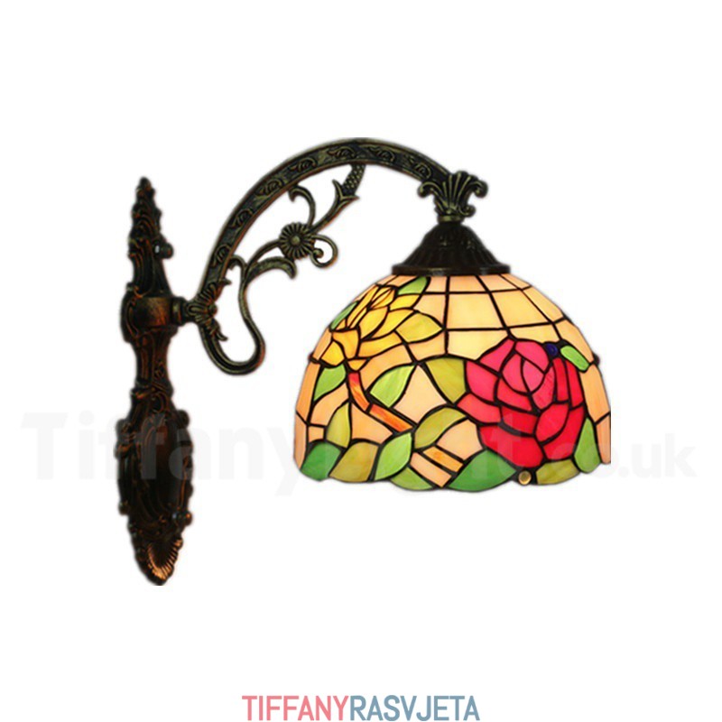 Ručno izrađena vintage zidna svjetiljka Tiffany u stilu vitraja od 8 inča, u stilu ruže