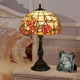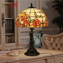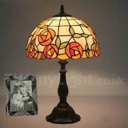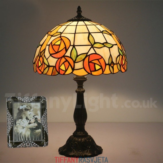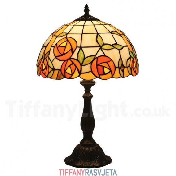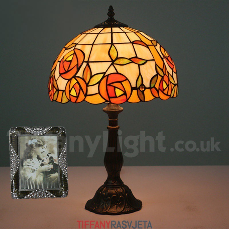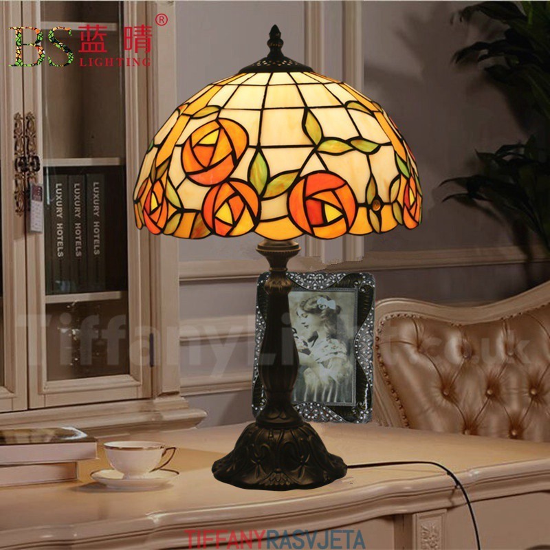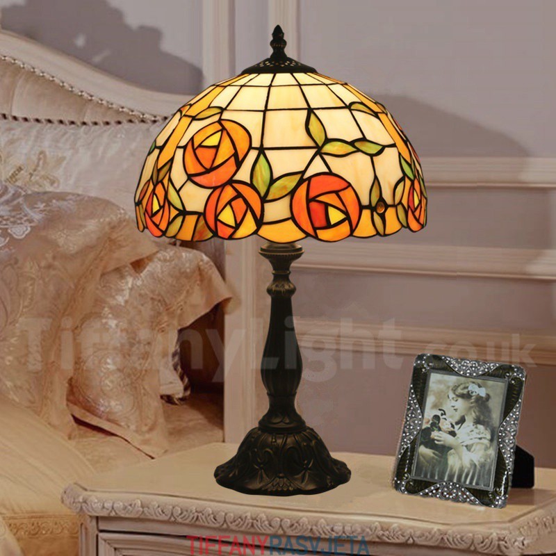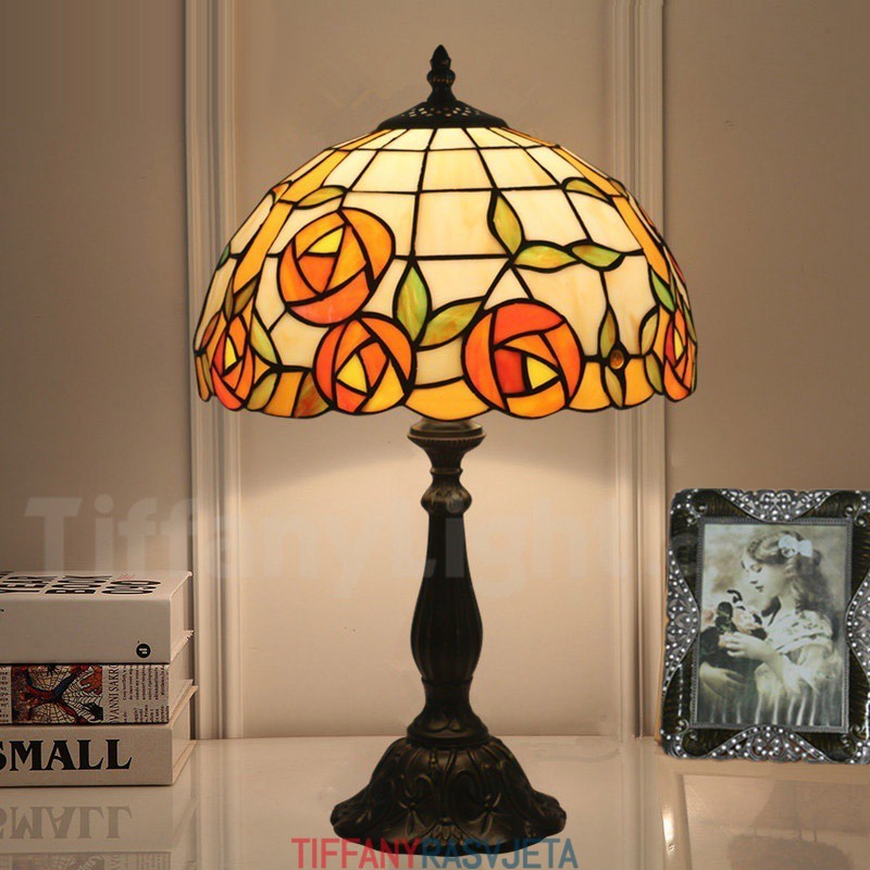 Ručno izrađena vintage 30 cm Tiffany stolna lampa u stilu vitraja s ružom