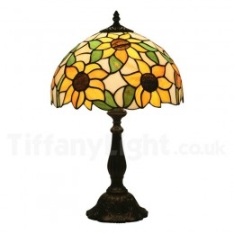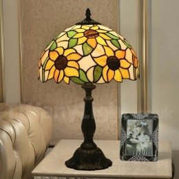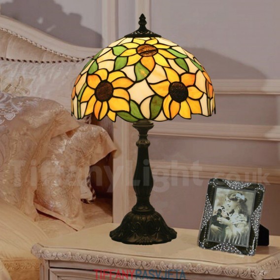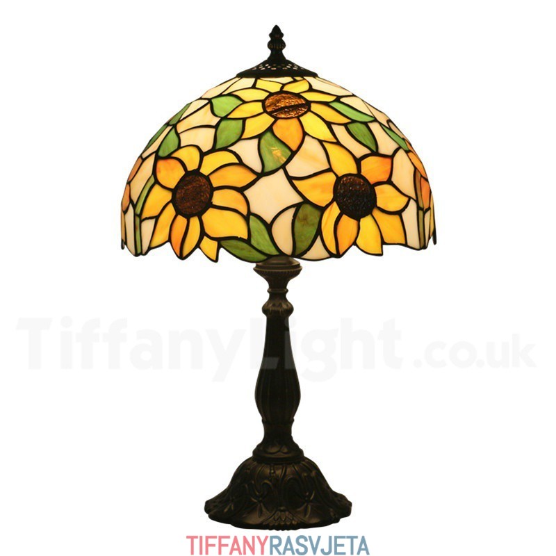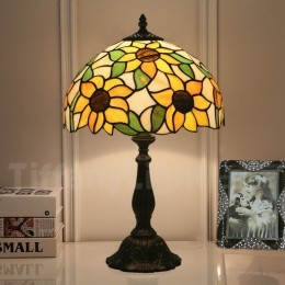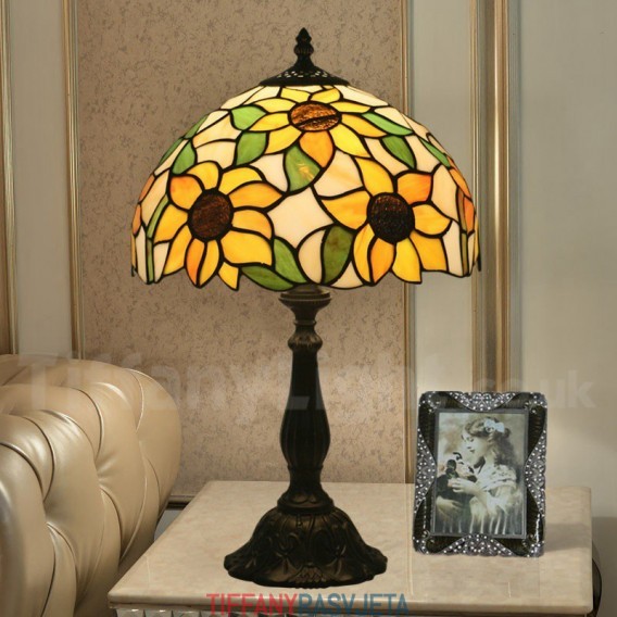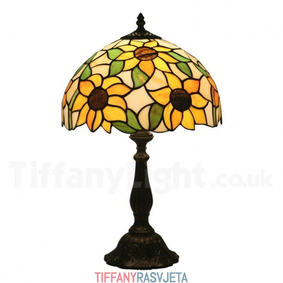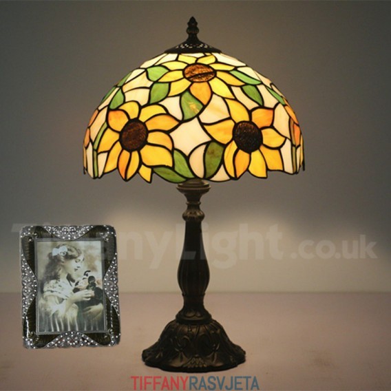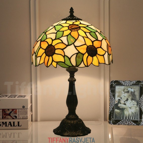 Ručno izrađena vintage 30 cm Tiffany stolna lampa u stilu vitraja s motivom suncokreta
