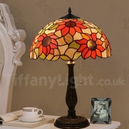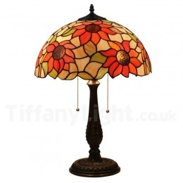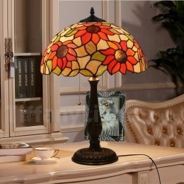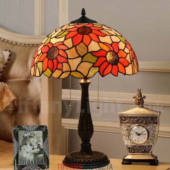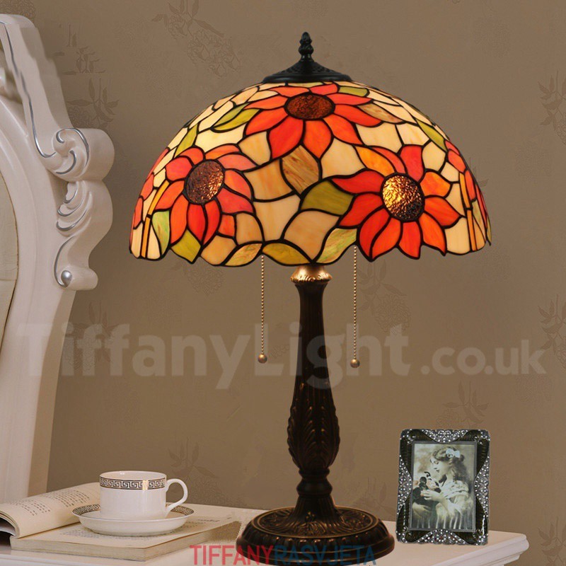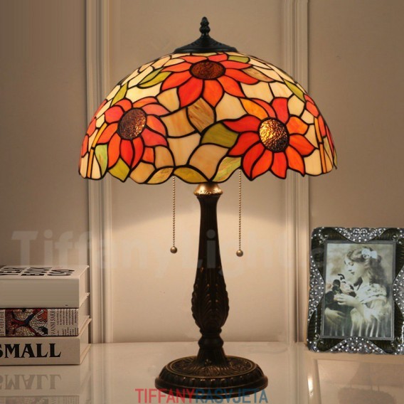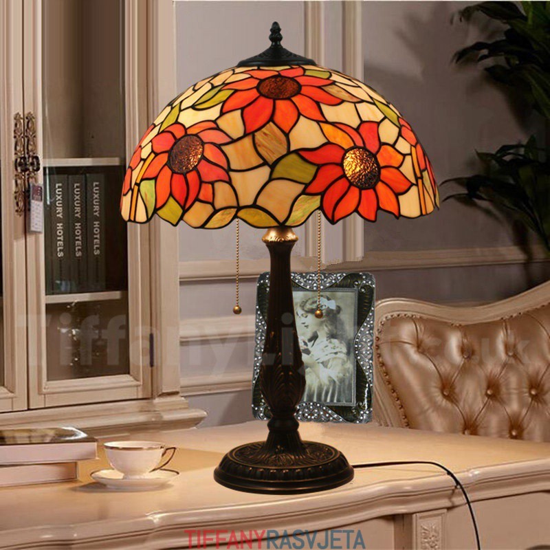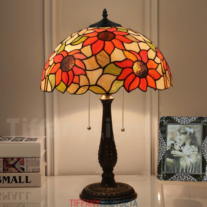 Ručno izrađena vintage Tiffany stolna lampa od vitraja u stilu suncokreta od 16 inča