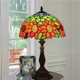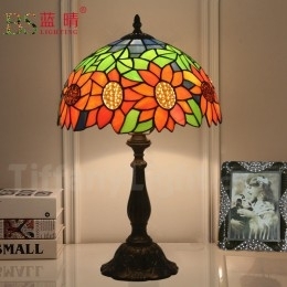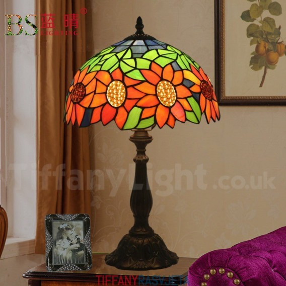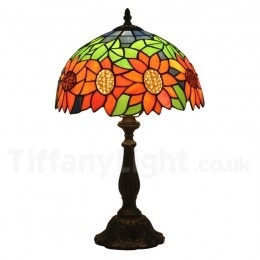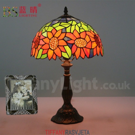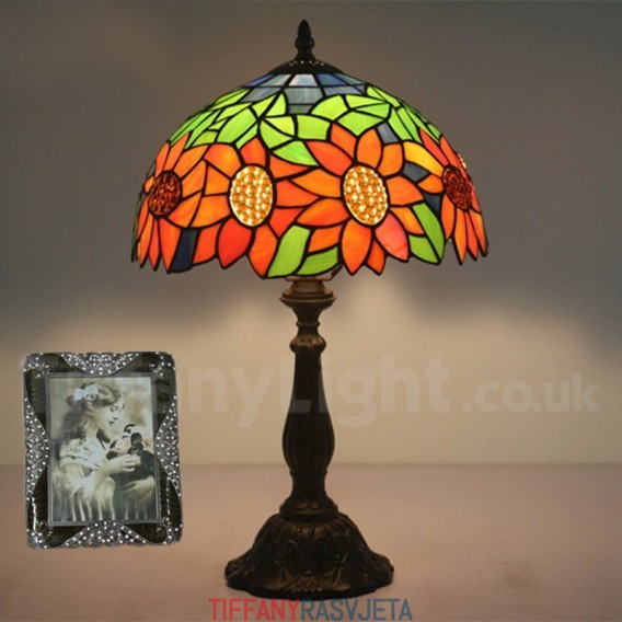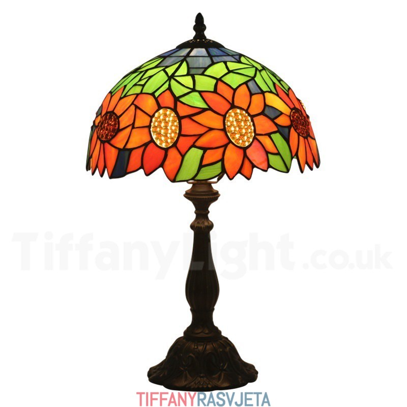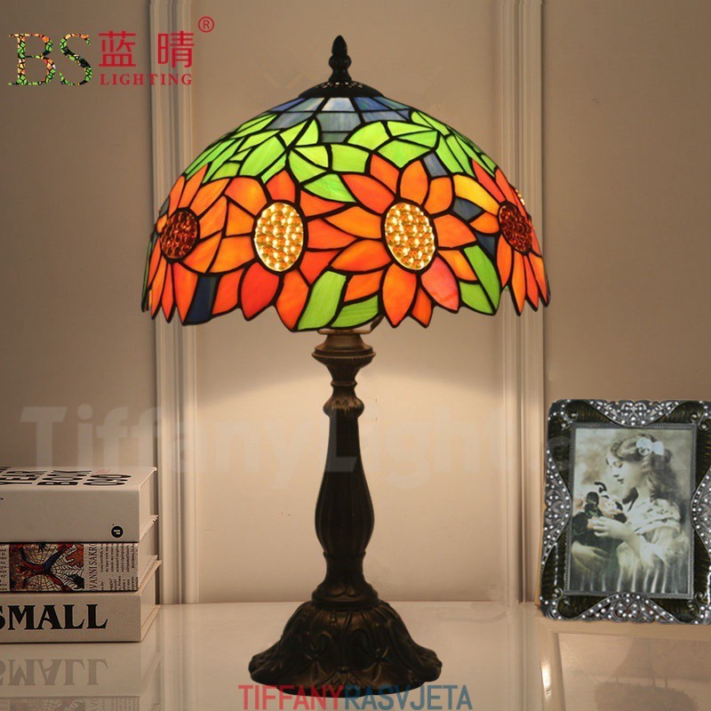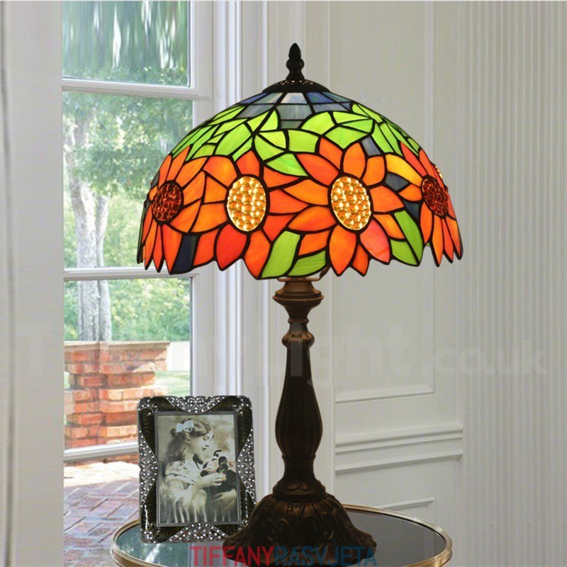 Ručno izrađena vintage 30 cm Tiffany stolna lampa u stilu vitraja s motivom suncokreta