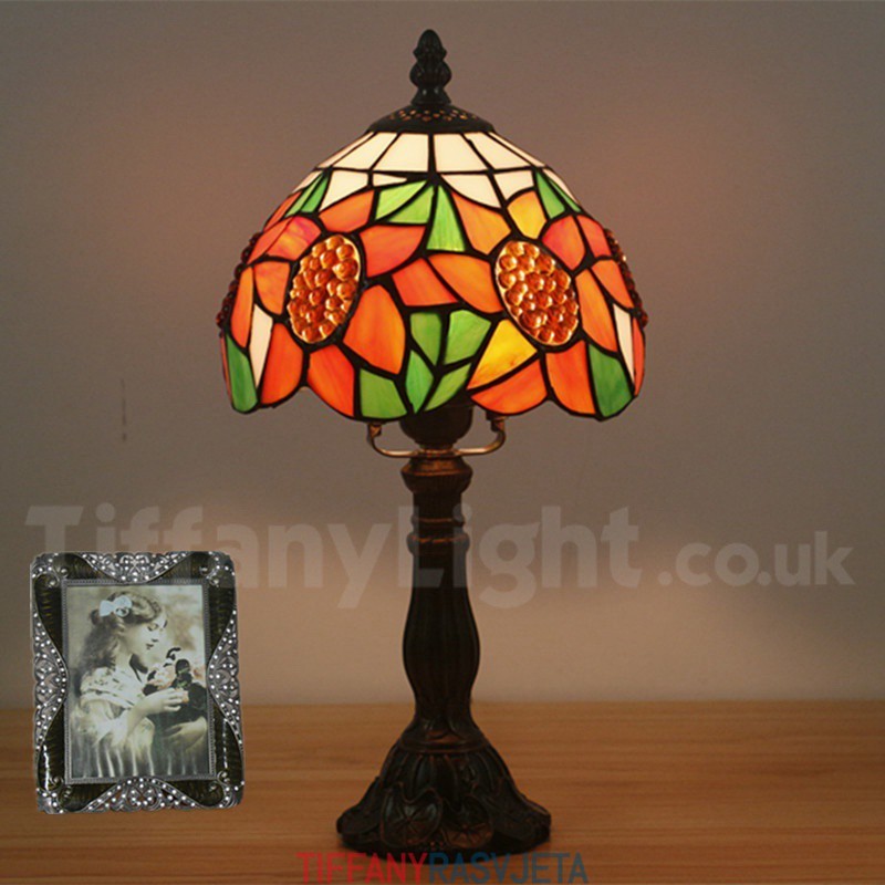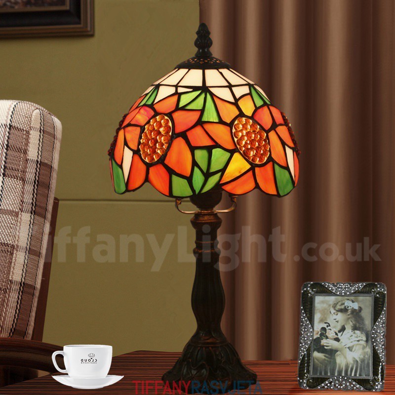 Ručno izrađena vintage Tiffany stolna lampa u stilu vitraja od 7 inča s motivom suncokreta
