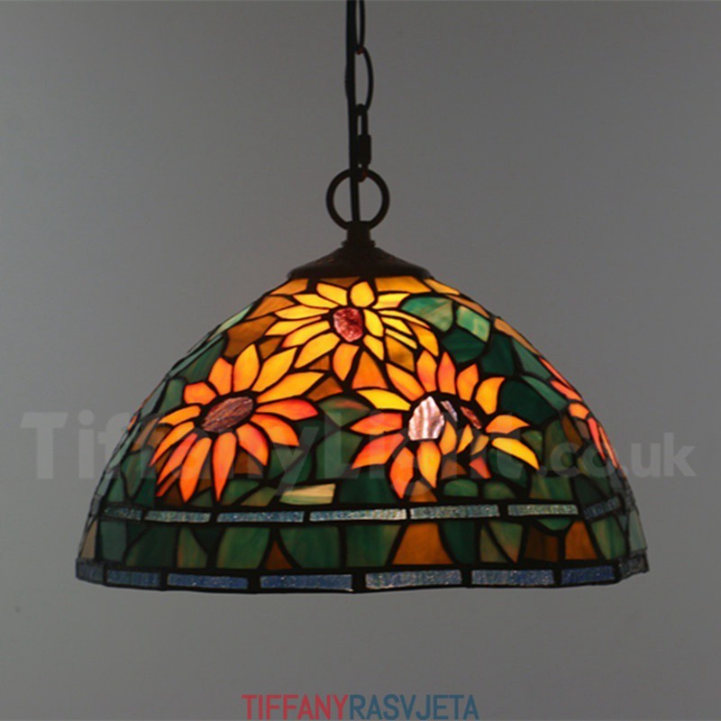 Ručno izrađena vintage 30 cm visoka vitražna lampa u stilu suncokreta Tiffany